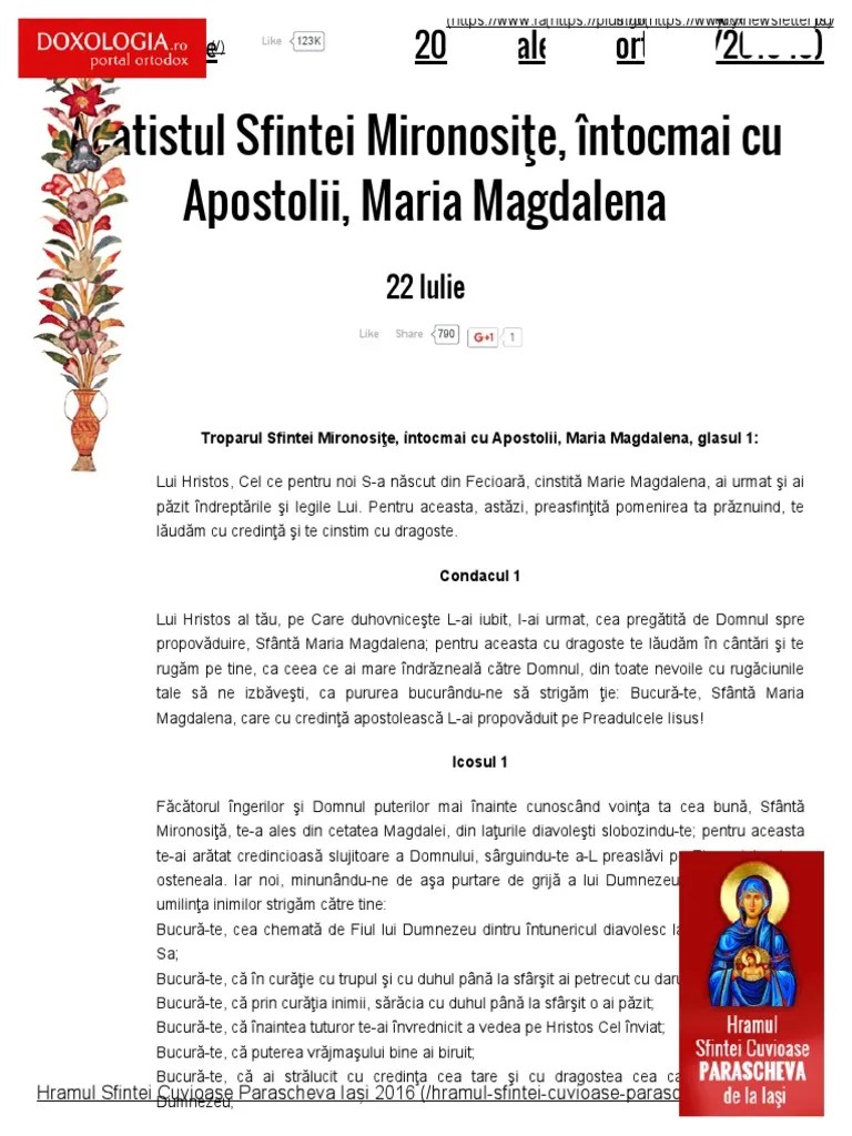 Site realizat de doxologia media,... Site realizat de doxologia media,. Împărate ceresc, mângâietorule, duhul adevărului, care pretutindenea ești și toate le împlinești, vistierul bunătăților și dătătorule de viață, vino și te sălășluiește întru noi, și ne curățește pe. Astfel, toţi se zideau sufleteşte de cuvintele lui şi, când treceau pe lângă el, îşi ziceau unii altora:. Legiuni de îngeri în ceruri de multe ori suspină pentru mine, ca nu cumva să răpească fără de veste sufletul meu și să merg în curgerile focului.