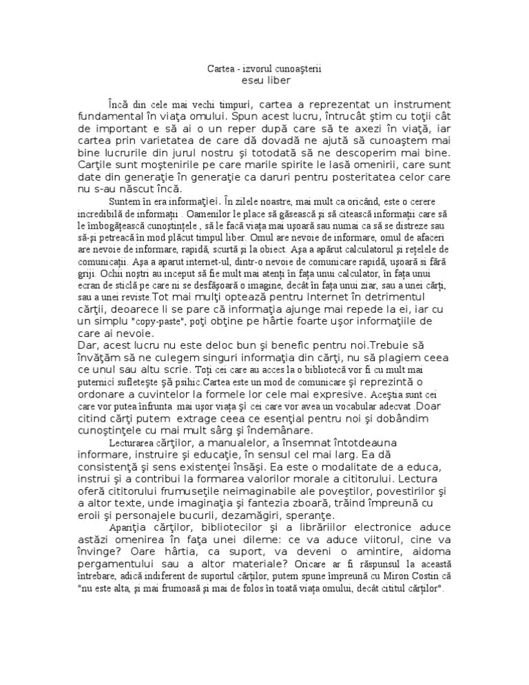 Colecție 47+ Eseu Cartea Izvor De Cunostinte Proaspat